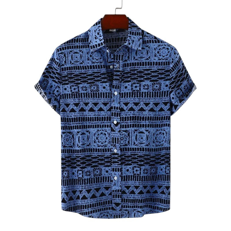 A fresh staple for the summer closet, this lightweight short sleeve shirt has a cool geometric pattern and a soft, easy drape. Easy to dress up or down, with just enough character to stand out.