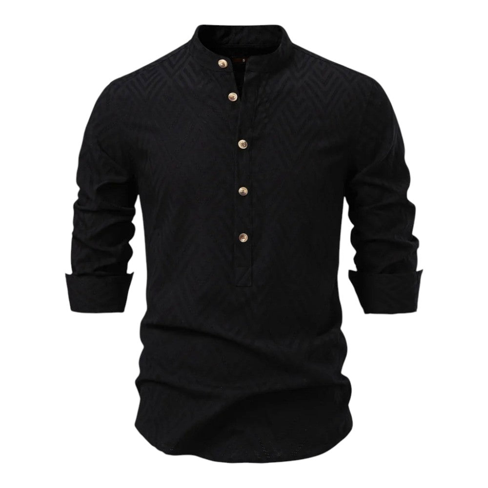 ✔ Half-button placket with a band collar