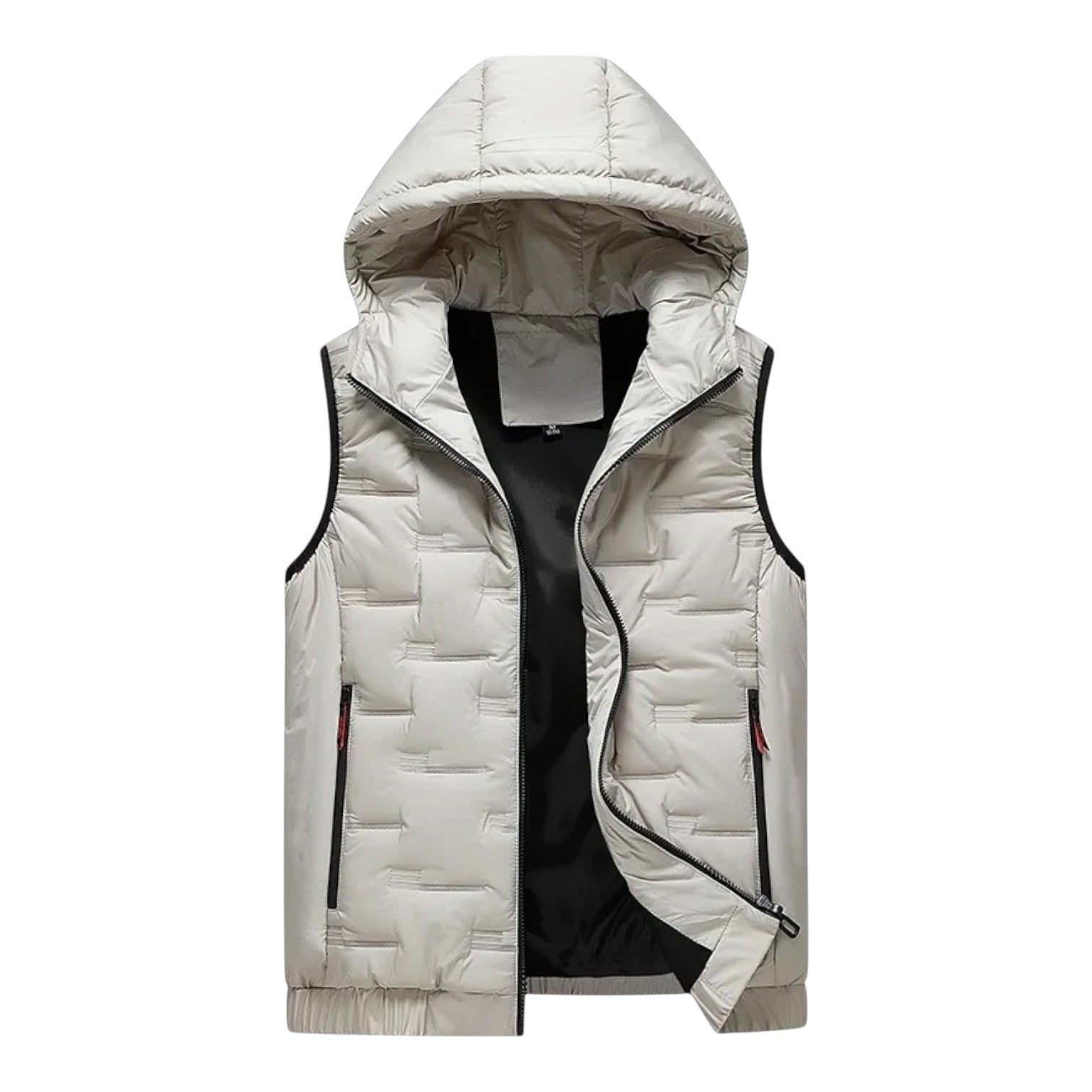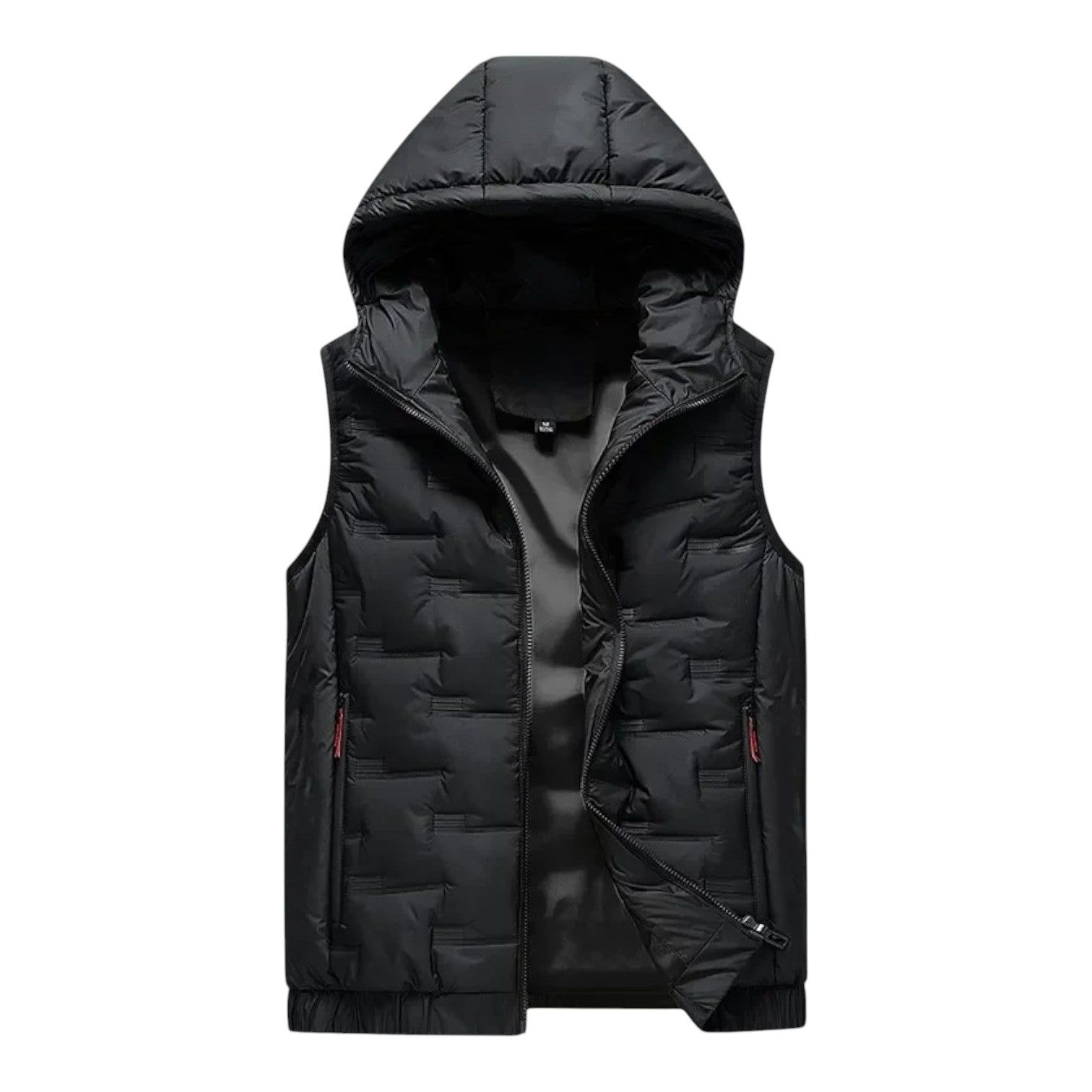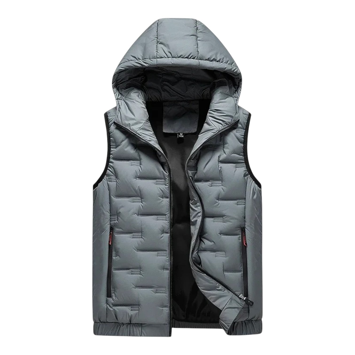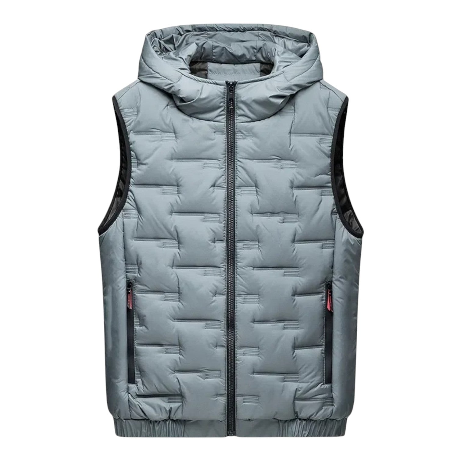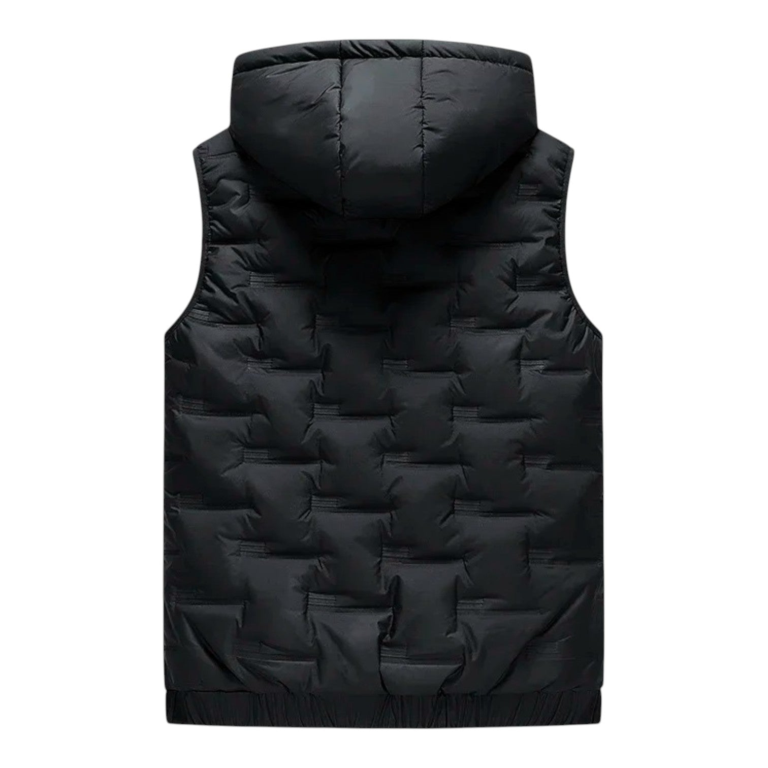 A modern hooded vest with a clean padded design for lightweight warmth. The smooth fabric and tailored fit make it a versatile outer layer, perfect for pairing with knits or casual shirts during cooler days.